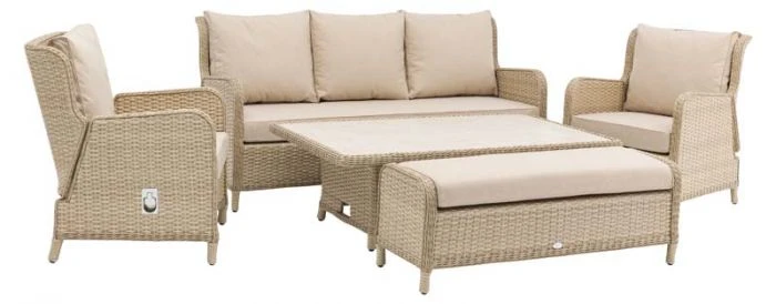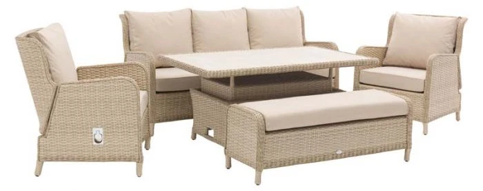 Bramblecrest Somerford Reclining 3 Seat Sofa Set W Adj Rectangle Table W 2 Reclining Sofa Chairs & Bench