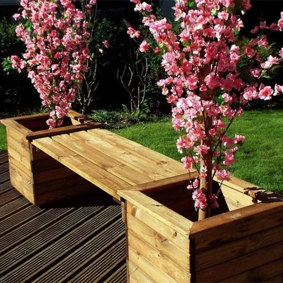 - Two square planters with one joining form/bench