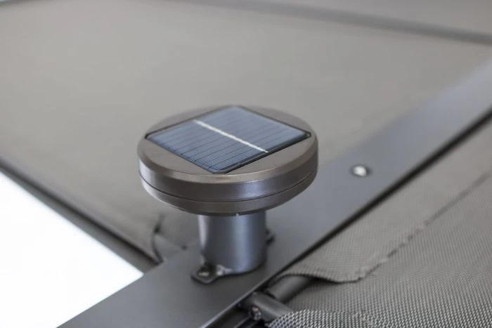 Featuring solar powered LED belt lights in the roof, the Panalsol® will add light to your night. The roof panels are made with soft Textilene which has endured vigorous testing to ensure it doesn’t deteriorate in either hot or cold temperatures. The sliding roof panels offer high UV protection of 50+.