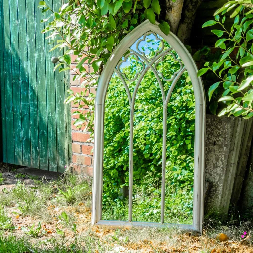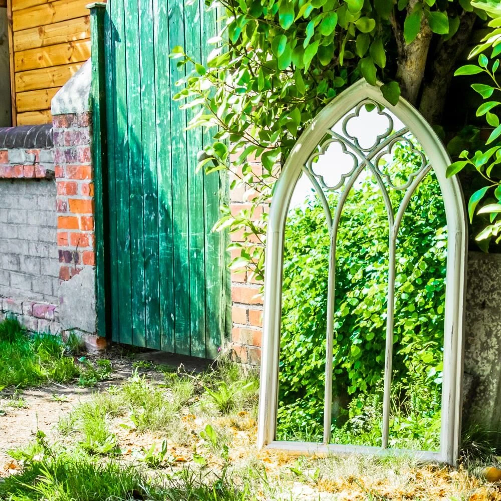 - STYLISH – The Holtby XL white metal garden arch mirror has a lovely traditional design that will create a stand out attraction in your garden. You can also use the mirror indoors. PLEASE NOTE: The white frame has a rustic/worn finish